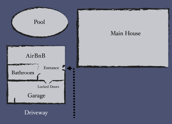 A couple hours later, we finally pulled up to our AirBnb. Just so you could have an idea of the layout of where we were staying I have included a sketch of the house below.